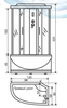 Сборка кабины без герметика! Передние стекла серые, задние стенки СТЕКЛЯННЫЕ черные, ассиметричный высокий поддон 45см. Левая/Правая + верхние - поворотные ролики с регулировочным винтом, нижние - поворотные ролики с кнопкой; нажимной сливной клапан с системой очистки (сеткой); с полкой на задней панели.