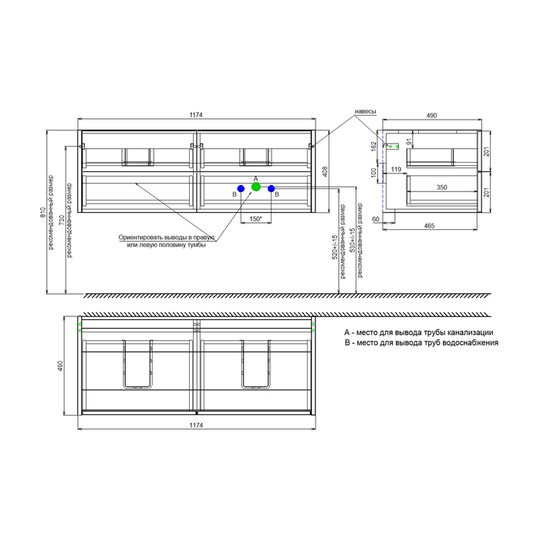 Габариты тумбы (Ш*Г*В): 1174*490*408 мм.
