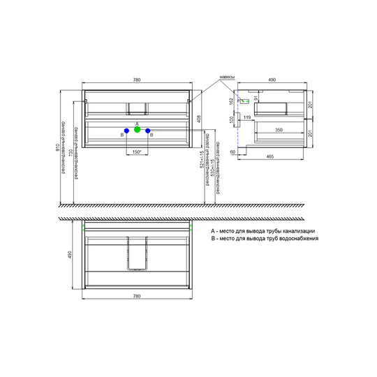 Габариты тумбы (Ш*Г*В): 780*490*408 мм.