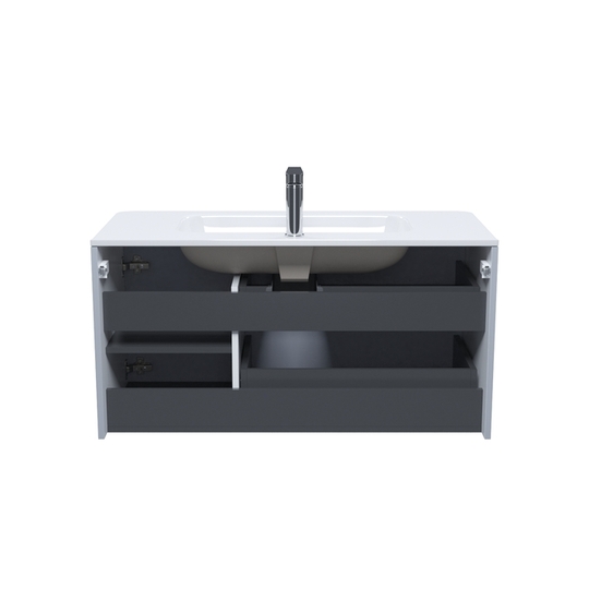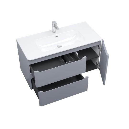 Два выдвижных ящика с механизмом плавного доведения, одна распашная дверца.