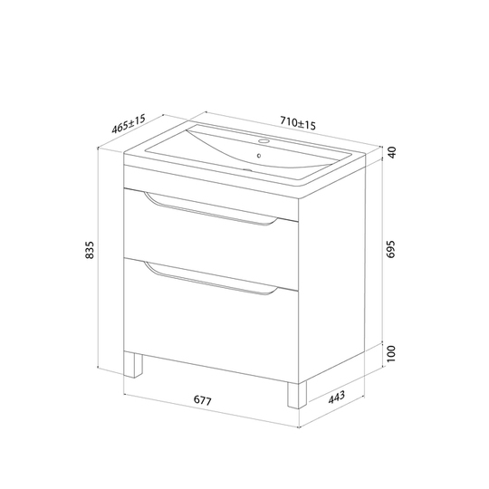 Размер умывальника: 710*465*835 мм